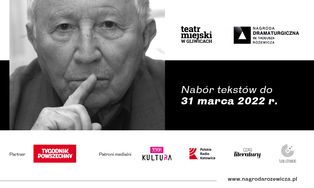 Z przyjemnością zawiadamiamy, że Tlen Literacki matronuje i patronuje pierwszej edycji Nagrody Dramaturgicznej im. Tadeusza Różewicza!